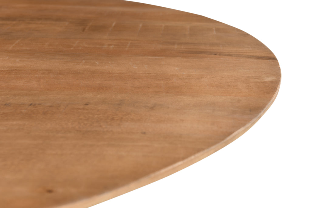 Der runde Tisch Salvator mit einem Durchmesser von 130 cm vereint ästhetisches Design mit funktionaler Robustheit. Der besondere Fuß sorgt für einen stabilen Stand und verleiht dem Tisch eine natürliche, warme Ausstrahlung. Ideal für gemütliche Zusammenkünfte und ein stilvolles Ambiente in jedem Raum. Mangoholz.